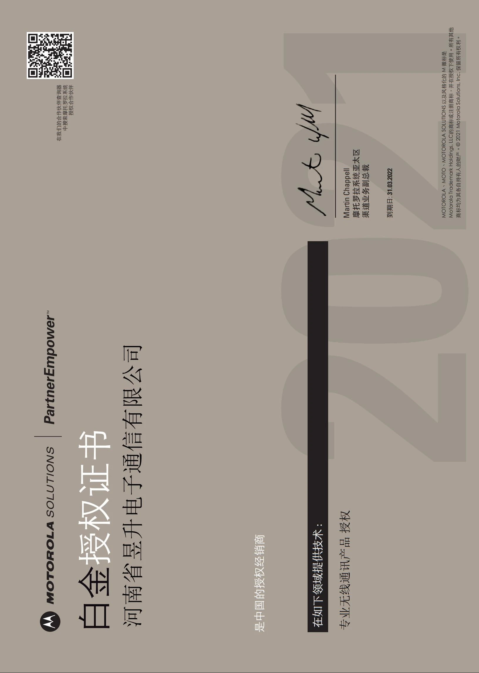 摩托罗拉白金代理证