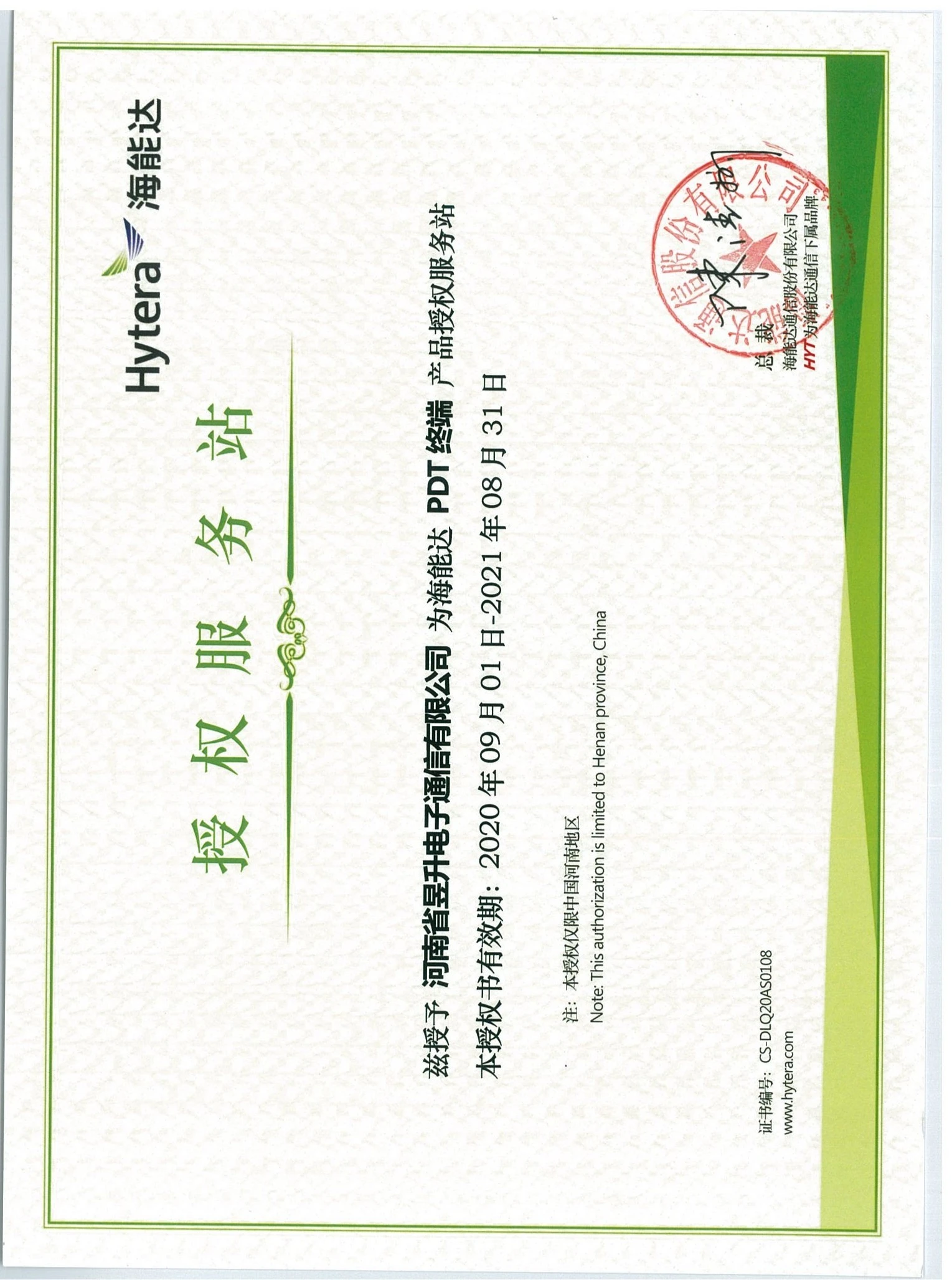 > 海能达PDT终端产品授权服务站